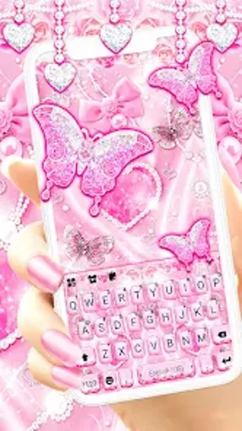 Pink Girly Butterfly Keyboard är ett smart och anpassat tangentbord för Android. Det levereras med snygg tangentbords bakgrund, typsnitt, emojis och klistermärken!